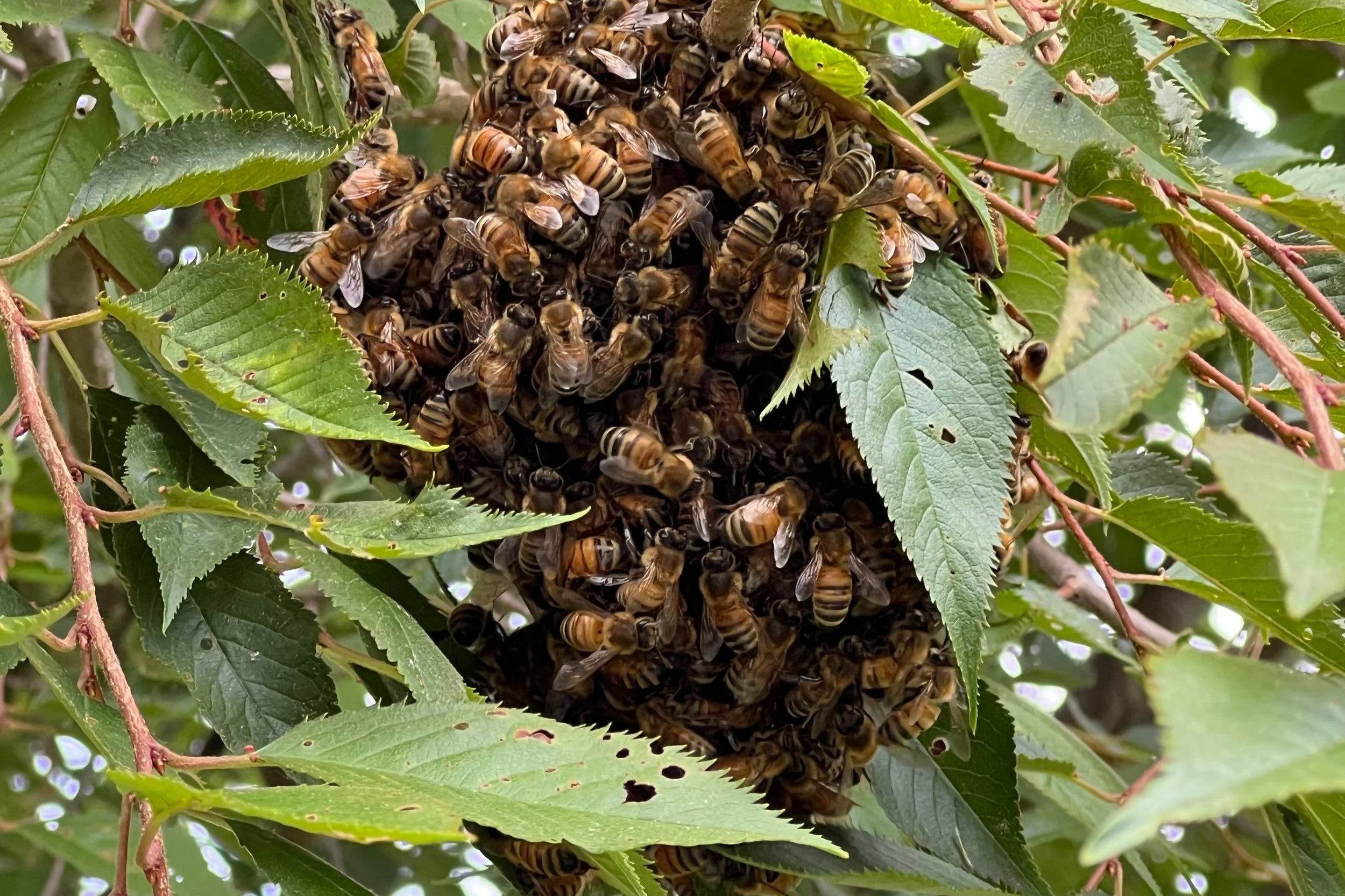 Have you discovered a cluster of honeybees on your property? Each spring and summer, honeybees multiply their populations by swarming, or dividing into smaller colonies, and by raising new queens. Usually this is a peaceful and beautiful process, yet sometimes they select their new site in a poor location - your home, bushes, or property! Honeybee hives within a close proximity to a residence can pose a hazard to children, to the elderly, and to individuals with compromised immune systems.